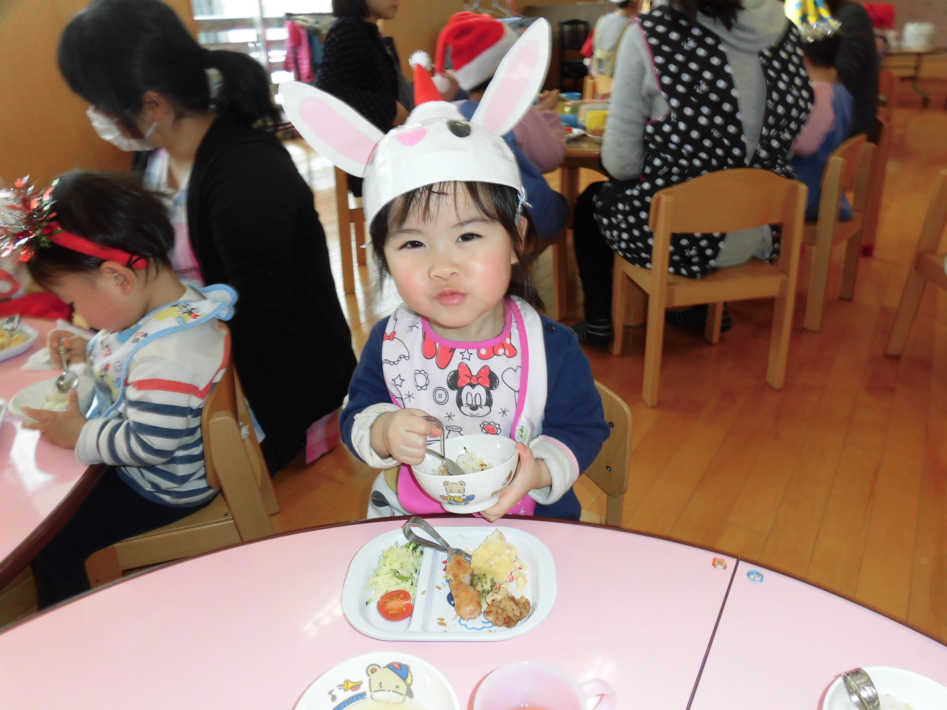 1歳児:クリスマス会食日≪みんなで食べるとおいしいね!≫