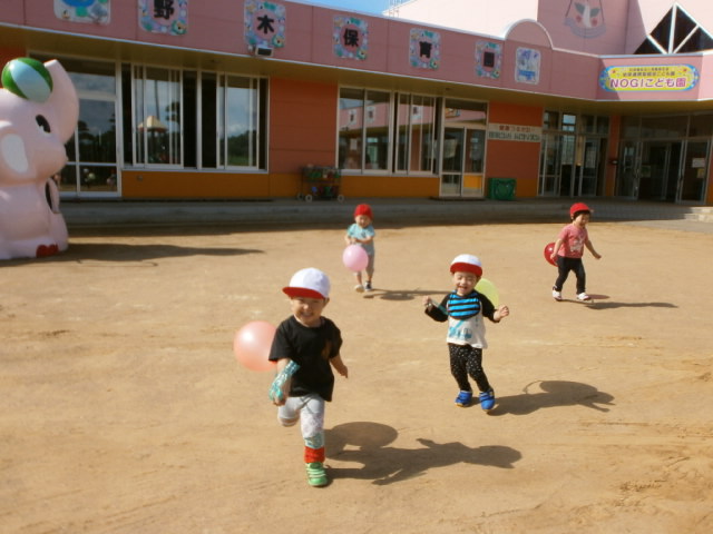 1歳児〜園庭で風船遊び!〜