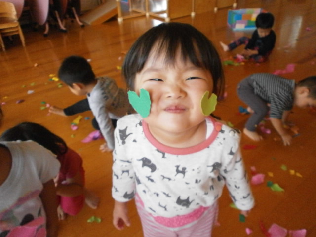 2歳児〜ビリビリ紙遊びA≪ハートのほっぺだよ≫〜